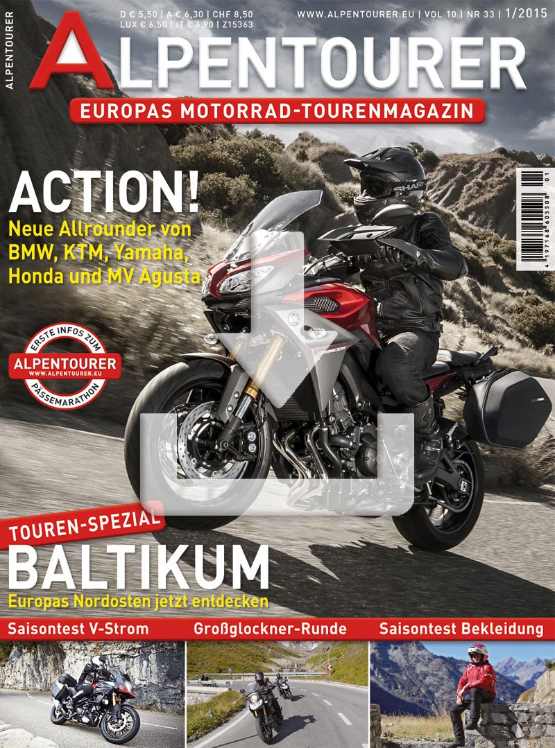 Unsere Reiseberichte entführen Euch dieses Mal in den Wilden Osten. Das Baltikum ist vor allem für Kultur-Liebhaber ein absolutes Schmankerl. In die Alpen geht es natürlich auch: Wir berichten von unserem Lesertreffen in Scheffau und der ganz besonderen Glockner-Runde, die wir mit den Teilnehmern unternahmen. Nachfahren ausdrücklich empfohlen. Dazu gibt es erste Infos zum ALPENTOURER Pässemarathon 2015. Schaut mal rein!