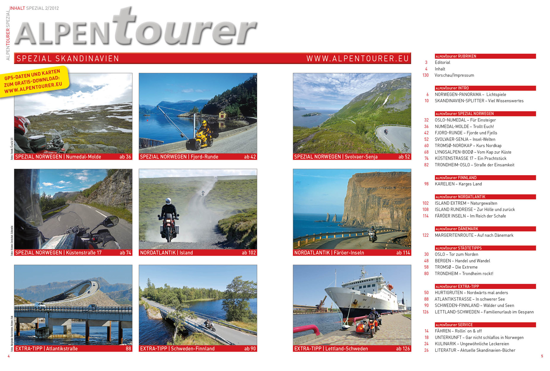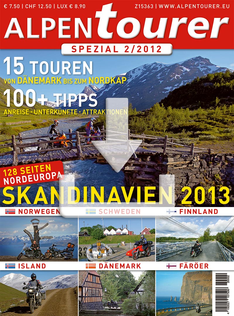 Als E-Paper + GPS: Das ALPENTOURER SPEZIAL SKANDINAVIEN Vol. 2 – der Motorrad-Reiseführer im Magazinformat. 132 vollgepackte Seiten pure Nordland-Faszination!