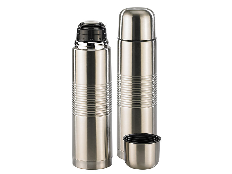 Mit einem Liter Inhalt ist diese Thermosflasche auch bei zweri Personen auf dem Motorrad groß genug für heiße oder kalte Getränke am Weg. Oder auch zur Mitnahme von heißem Wasser für die elektrische Mini-Espresso-Maschine. Der Doppelverschluss aus Druckdeckel und Deckeltasse hält absolut dicht. Heißes bleibt heiß, Kaltes bleibt kalt. Der perfekte Tourenbegleiter aus stoßfestem und rostfreiem Edelstahl.
