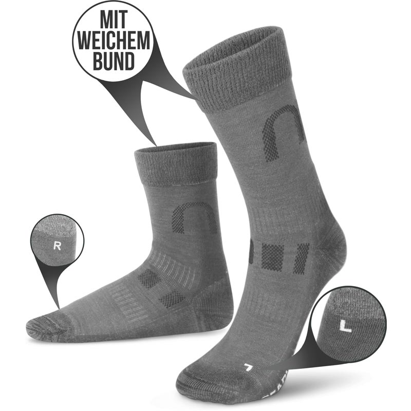 Der extra weiche Komfortbund, die weichen Nähte – vor allem im Zehenbereich – und die perfekte Passform machen die Socken zu exzellenten Begleitern auf Tour, aber auch bei sonstigen Freizeit-Aktivitäten.