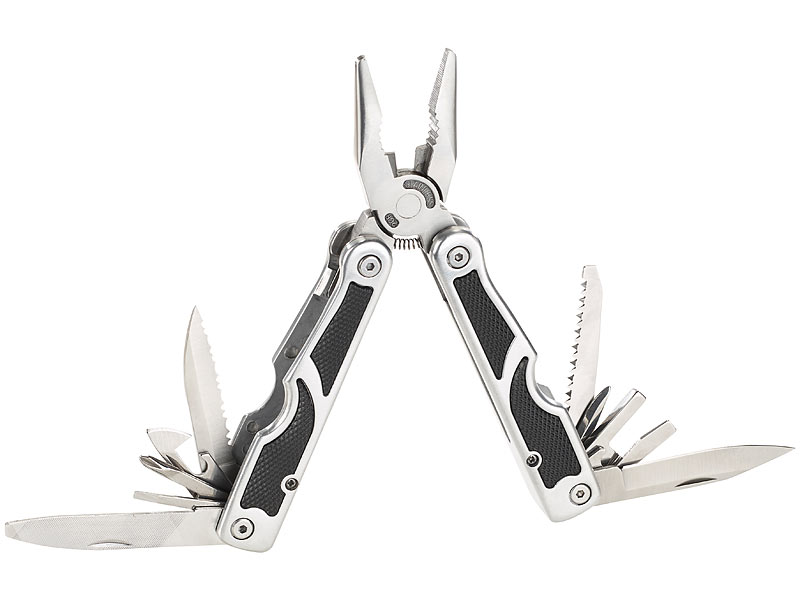 Vielseitiges Multitool für Camping, Motorrad, Auto und zu Hause. Die wichtigsten Werkzeuge im kompakten Format immer zur Hand.